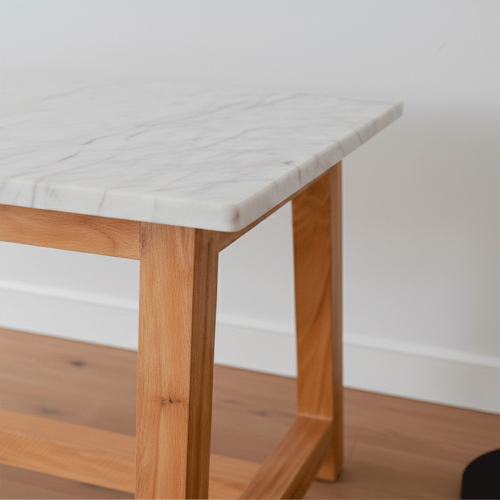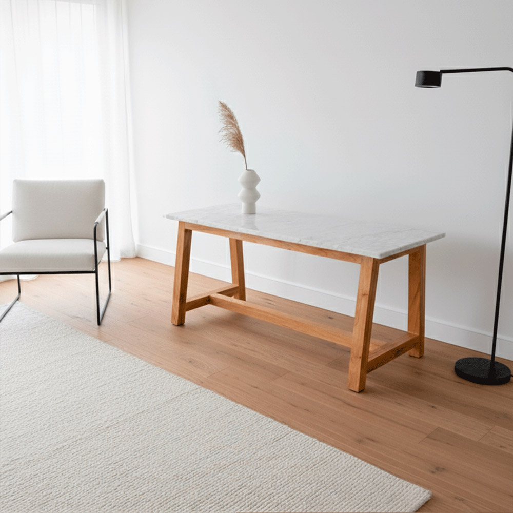 Mesa Rectangular Con Tapa De Mármol Carrara Y Patas De Madera Paraíso